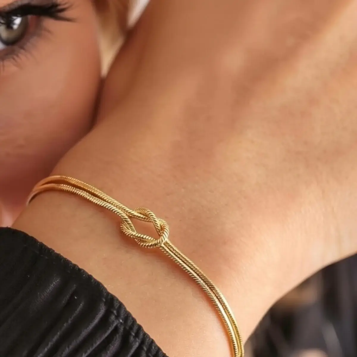 - Balık sırtı örgü yapısı bileklikte tok ve dengeli bir duruş oluşturur.