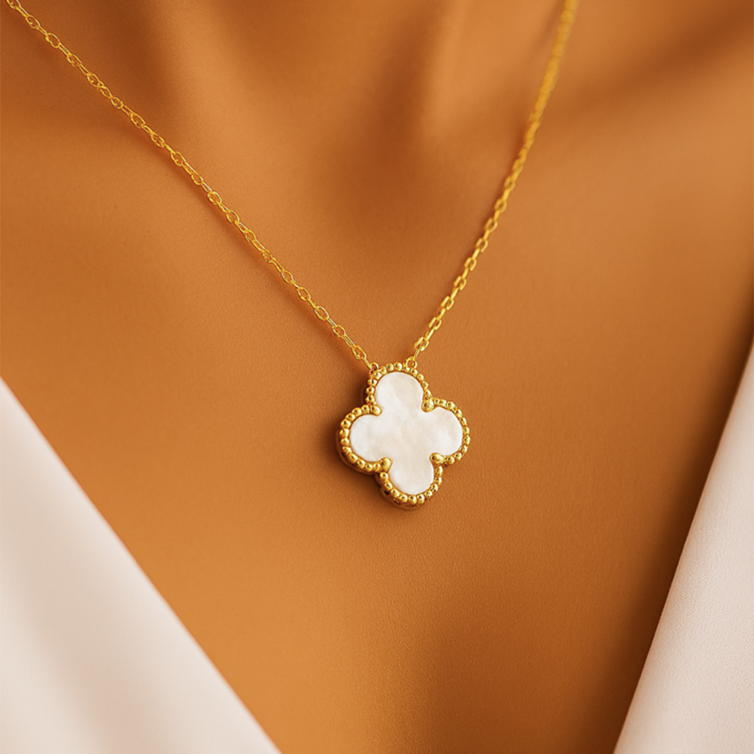 14 Ayar Altın Beyaz Yonca Kolye (XL)