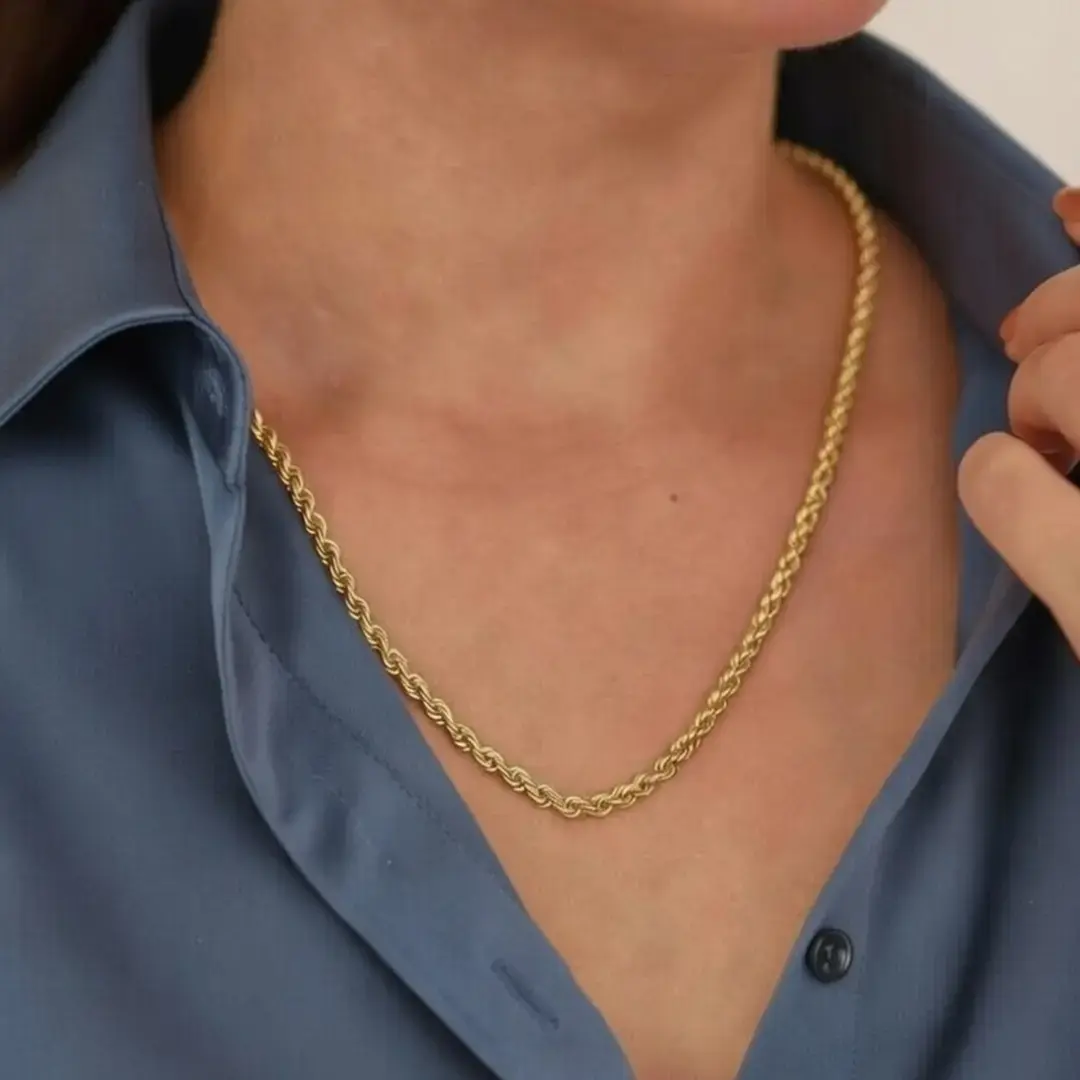 14 Ayar Altın Halat Zincir (55 cm – XL)