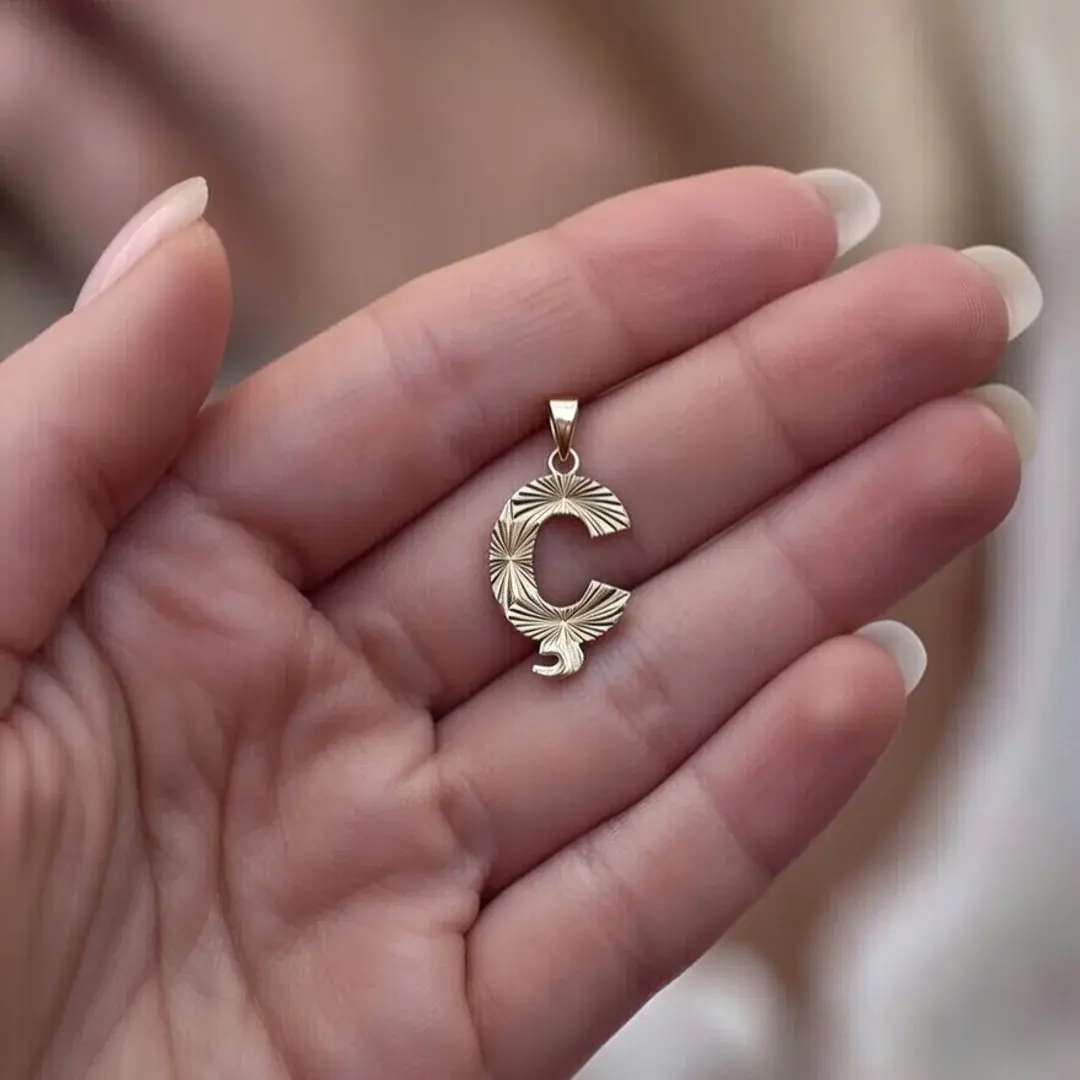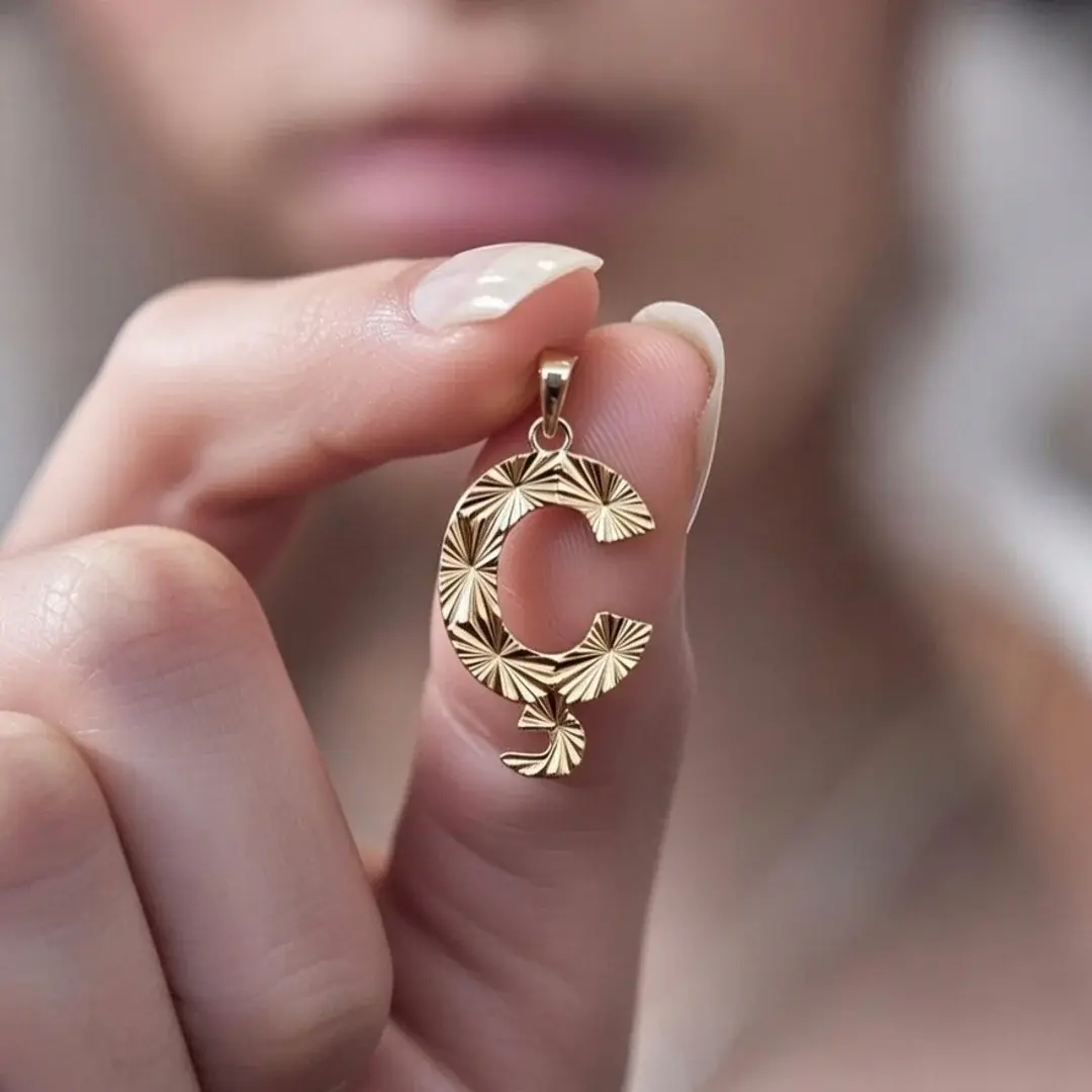 14 Ayar Altın Kalemli Harf Kolye Ucu (Ç Harfi)