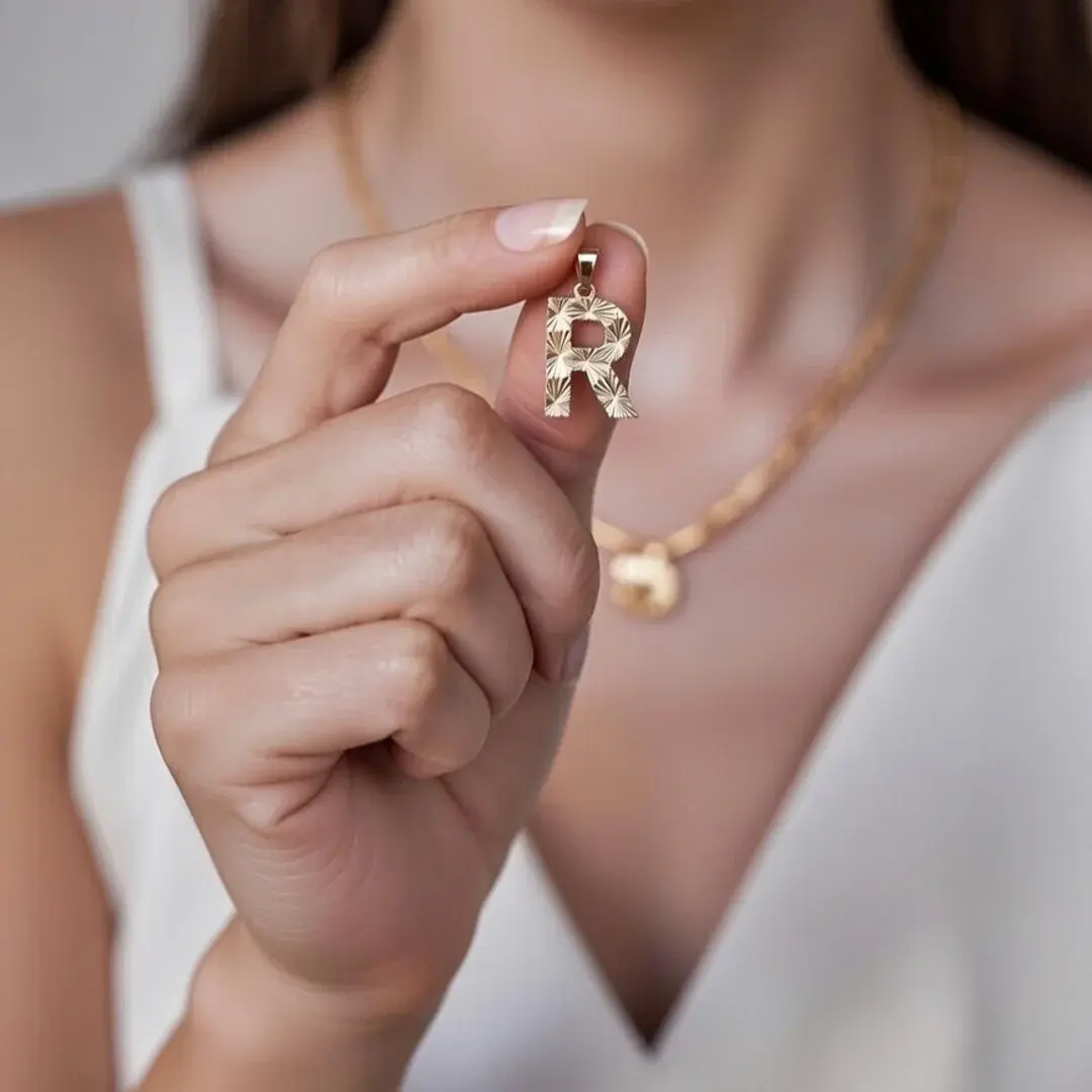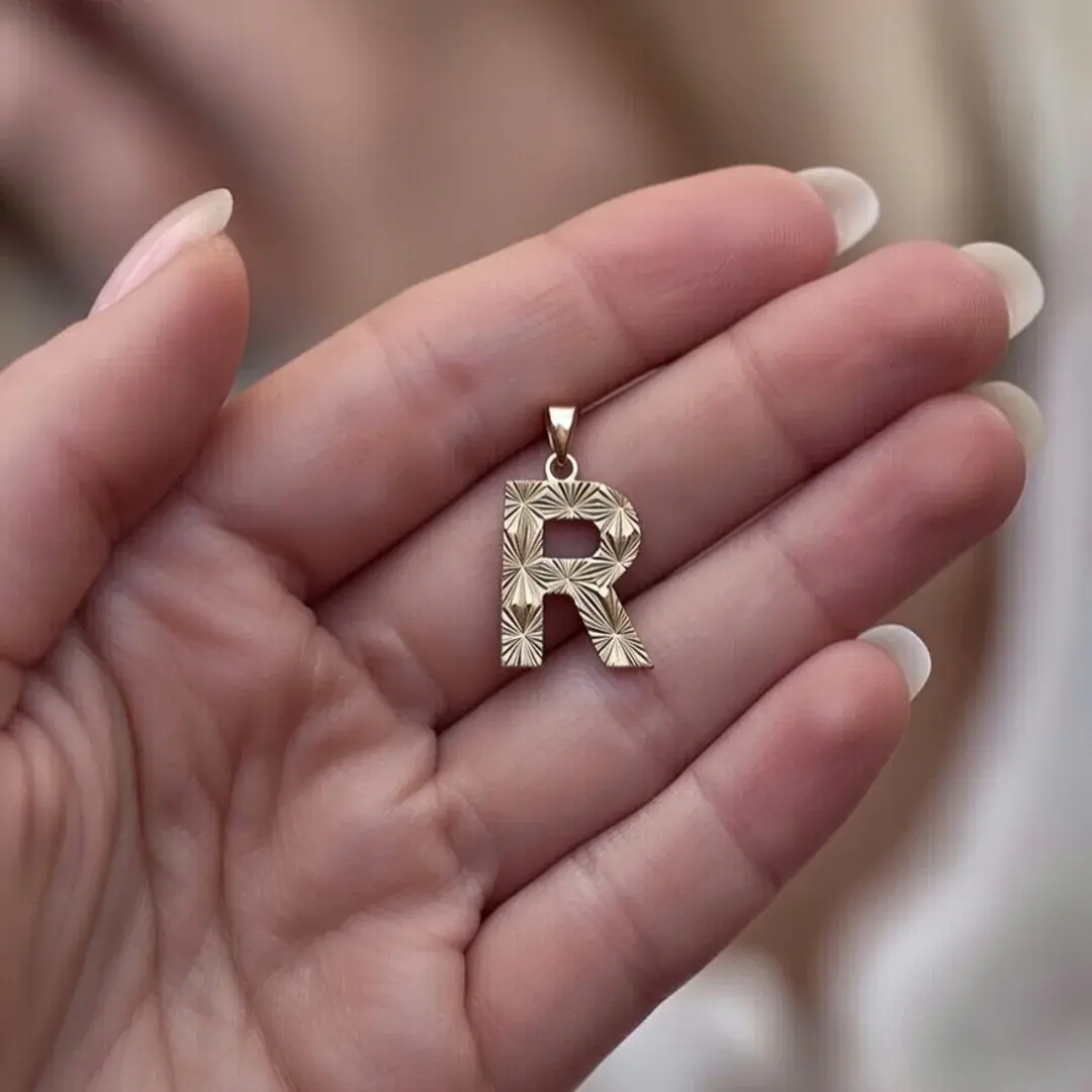 14 Ayar Altın Kalemli Harf Kolye Ucu (R)