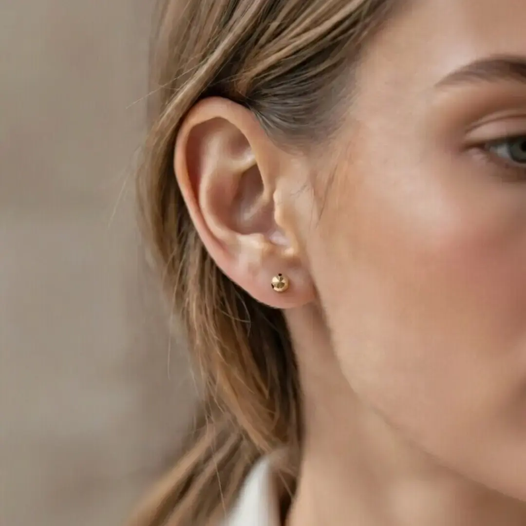 14 Ayar Altın Kalemli Top Küpe (5 mm)