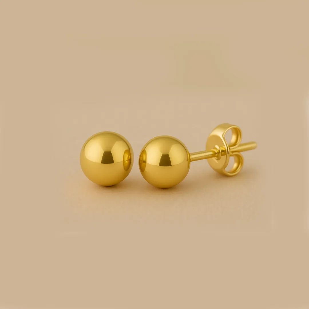 14 Ayar Altın Parlak Top Küpe (7 mm)