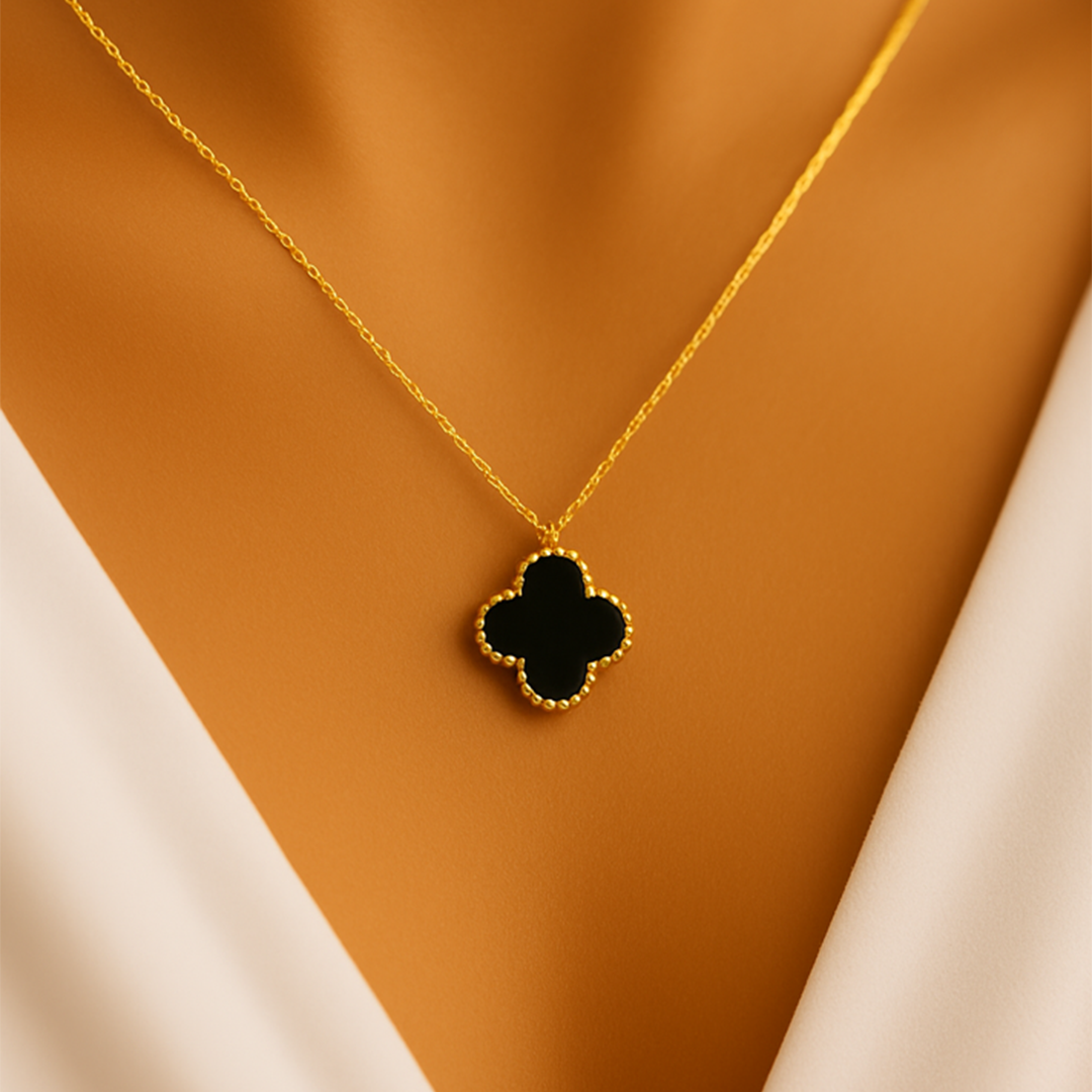 14 Ayar Altın Siyah Yonca Kolye (L)