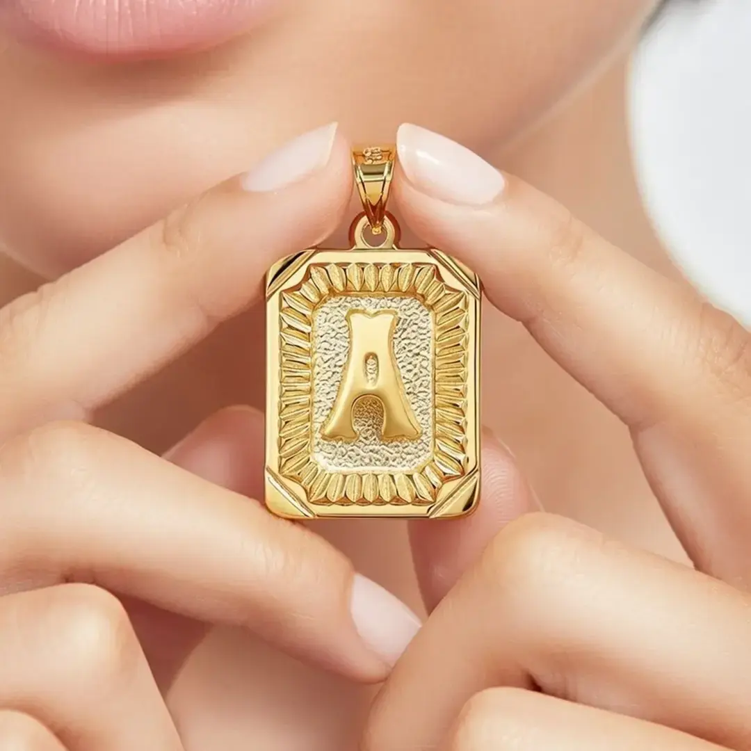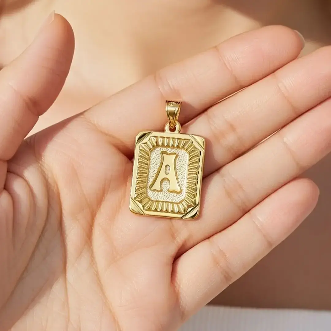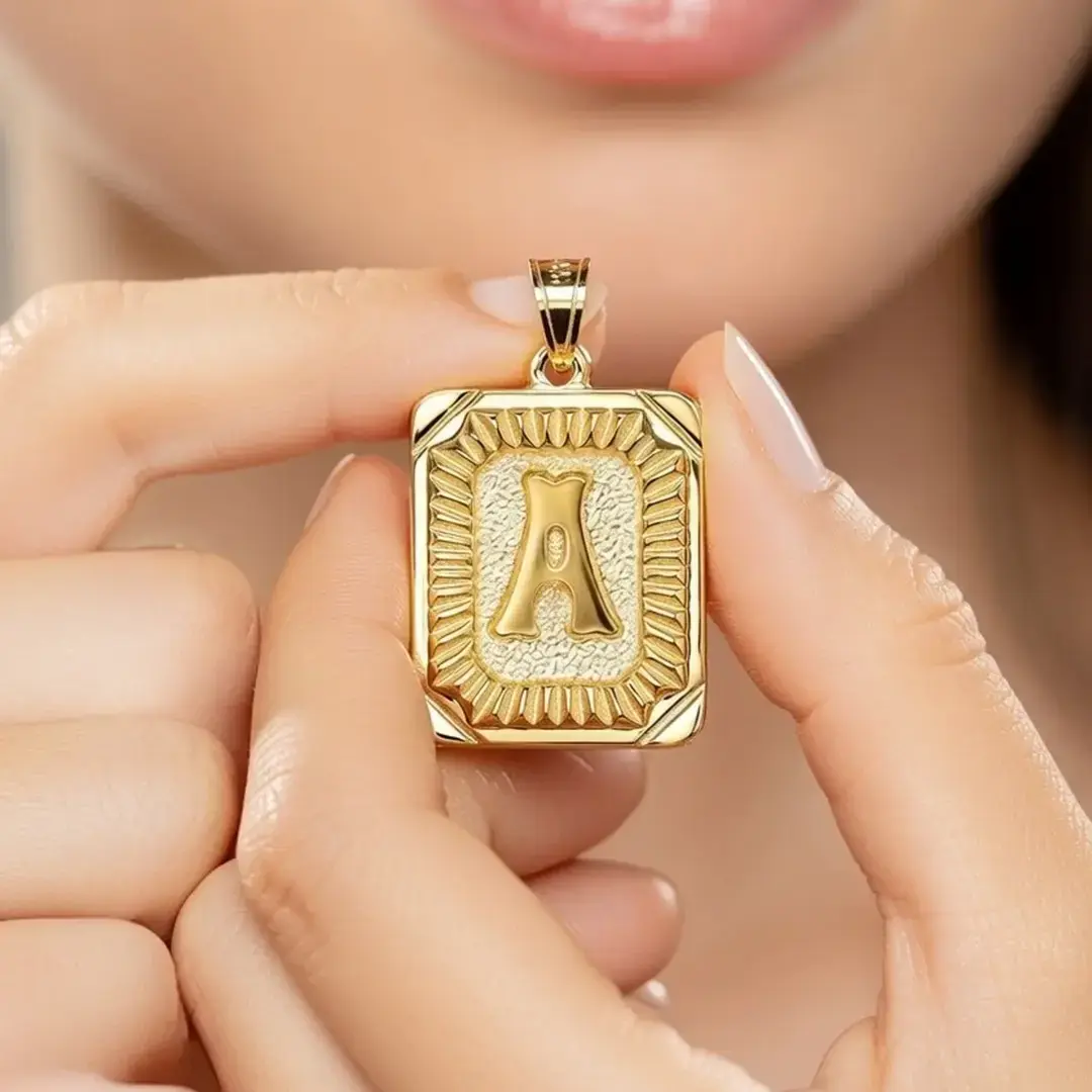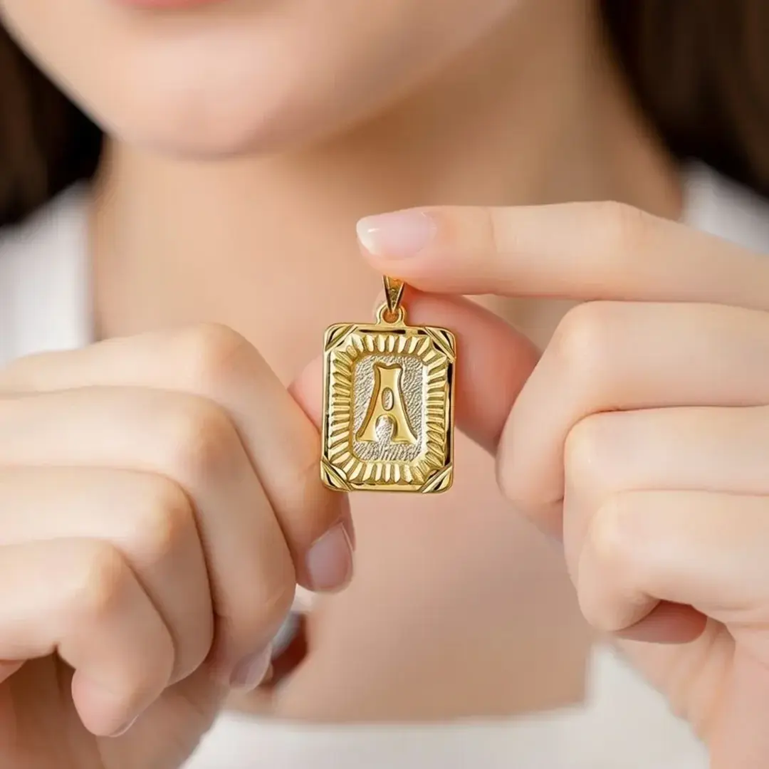14 Ayar Altın Vintage Dikdörtgen Harf Kolye Ucu (A)