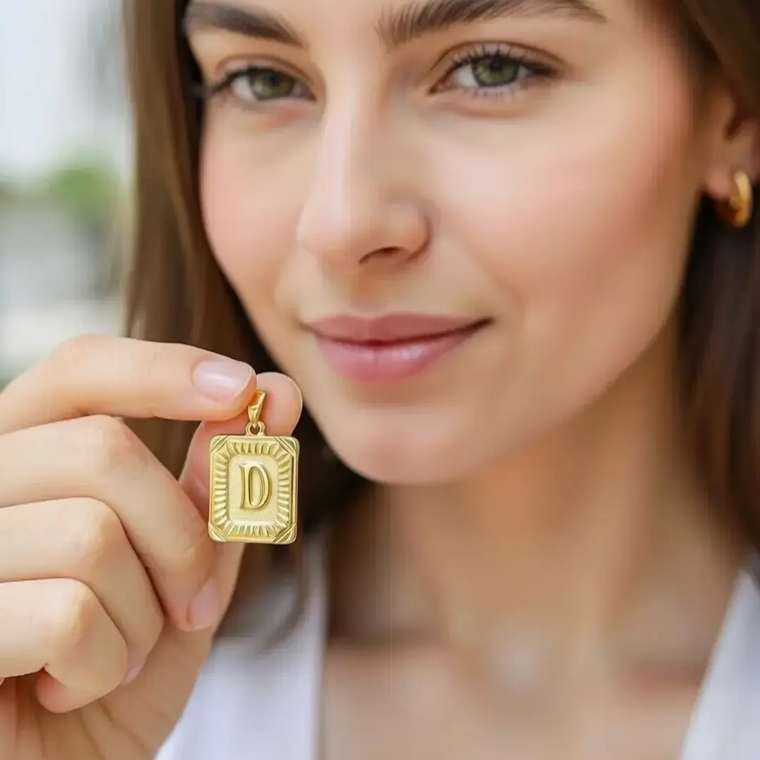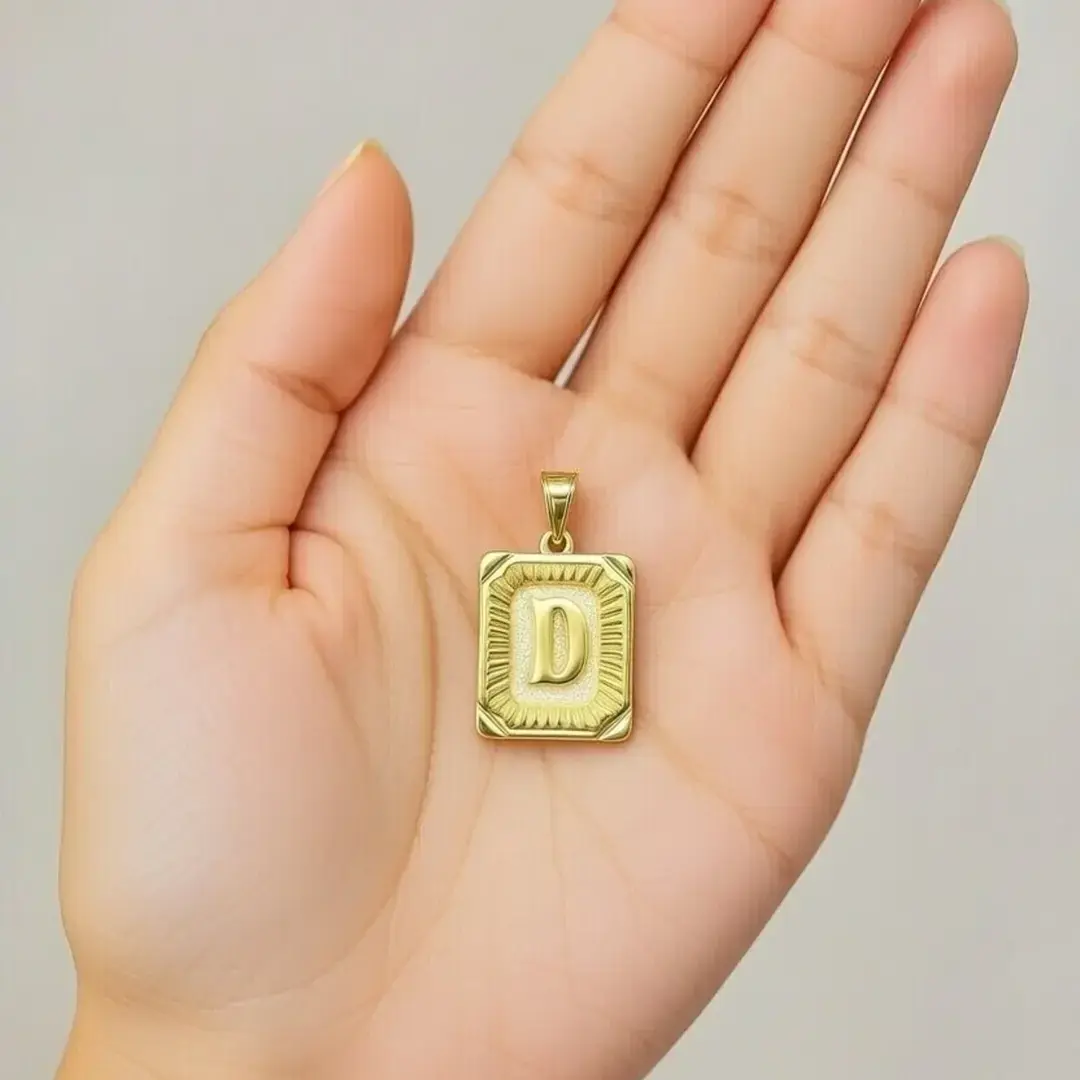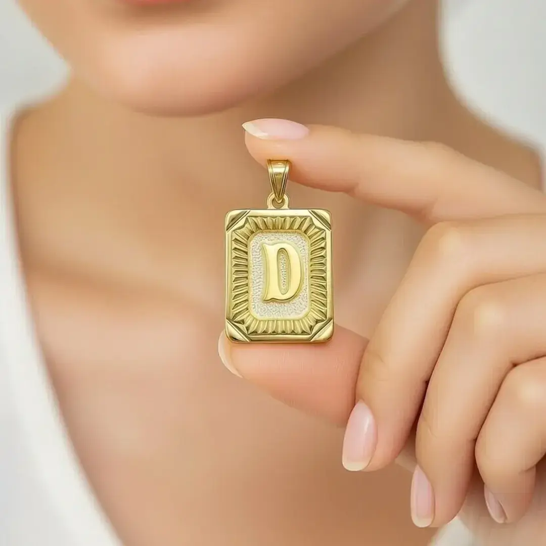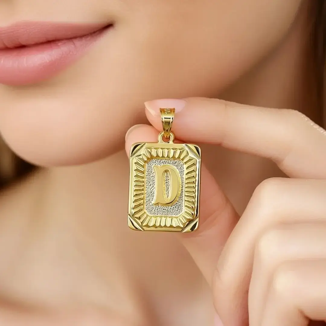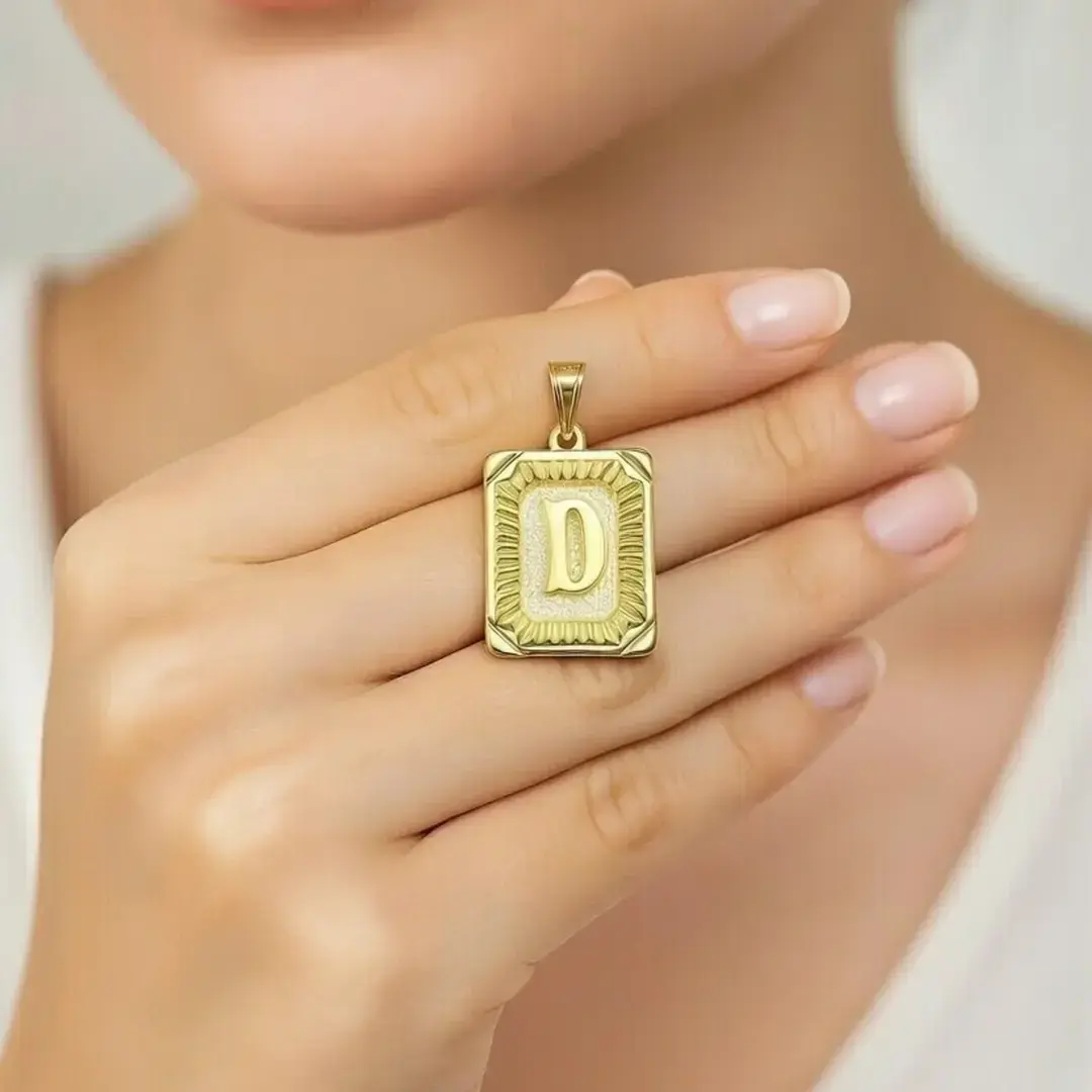 14 Ayar Altın Vintage Dikdörtgen Harf Kolye Ucu (D)