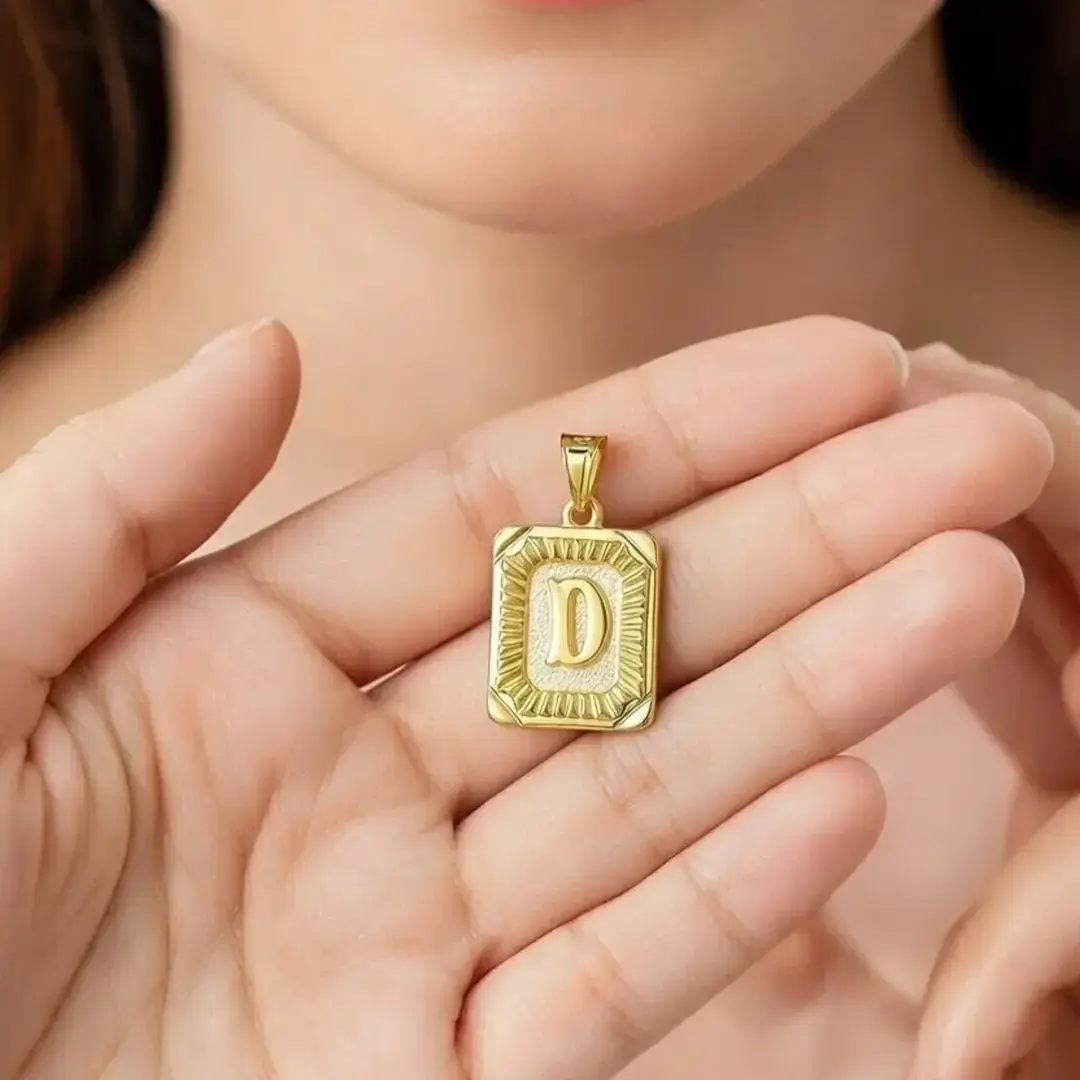 14 Ayar Altın Vintage Dikdötrgen Harf Kolye Ucu ( D Harfi )