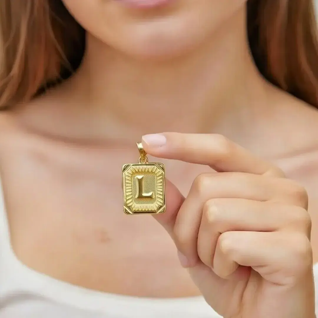 14 Ayar Altın Vintage Dikdötrgen Harf Kolye Ucu ( L Harfi )
