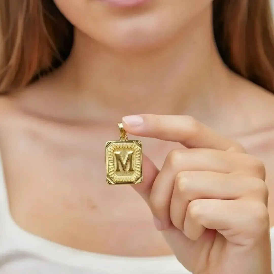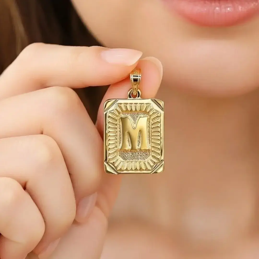 14 Ayar Altın Vintage Dikdörtgen Harf Kolye Ucu (M)