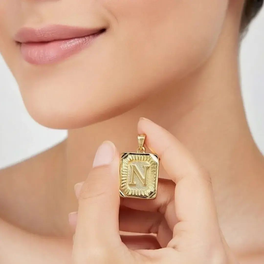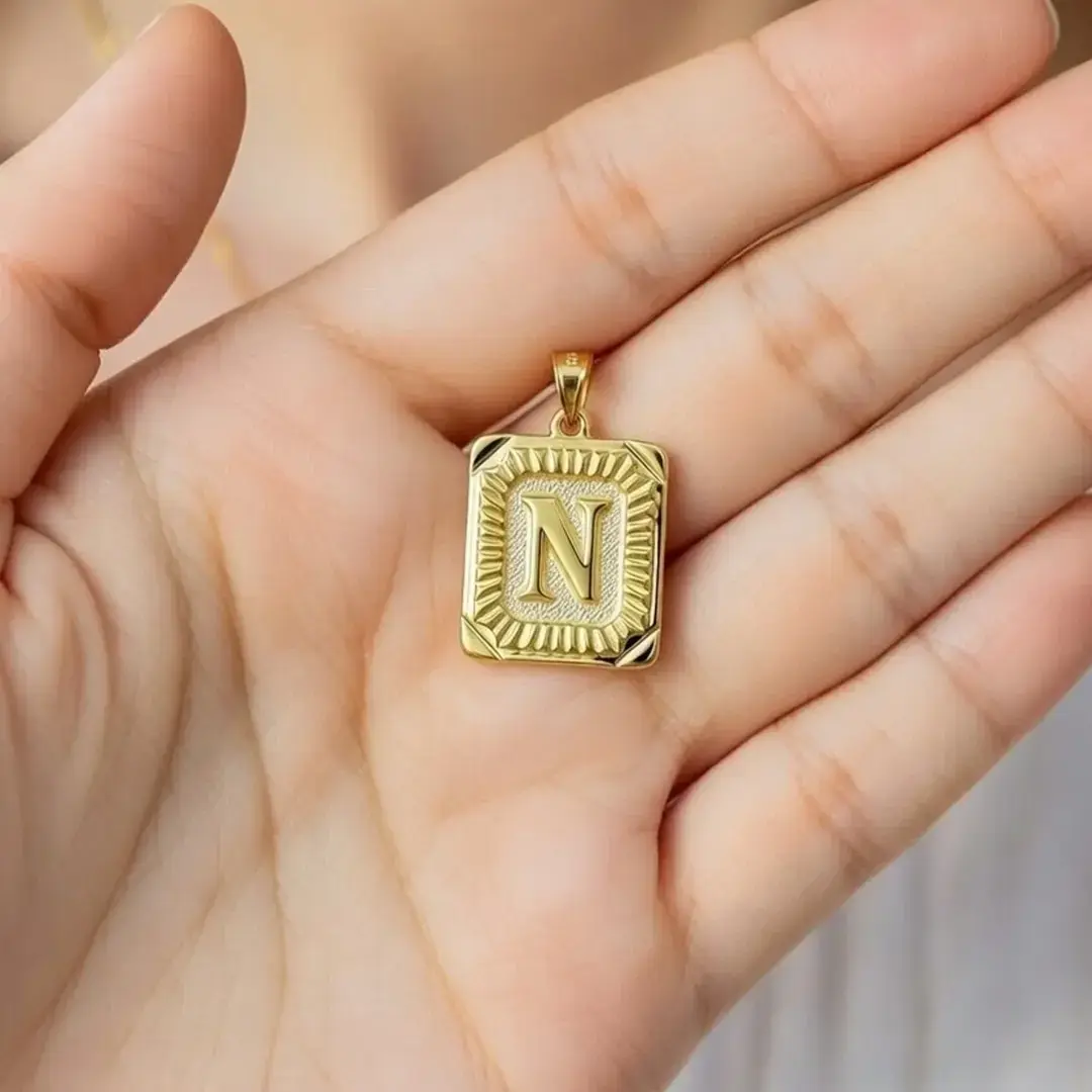 14 Ayar Altın Vintage Dikdötrgen Harf Kolye Ucu ( N Harfi )