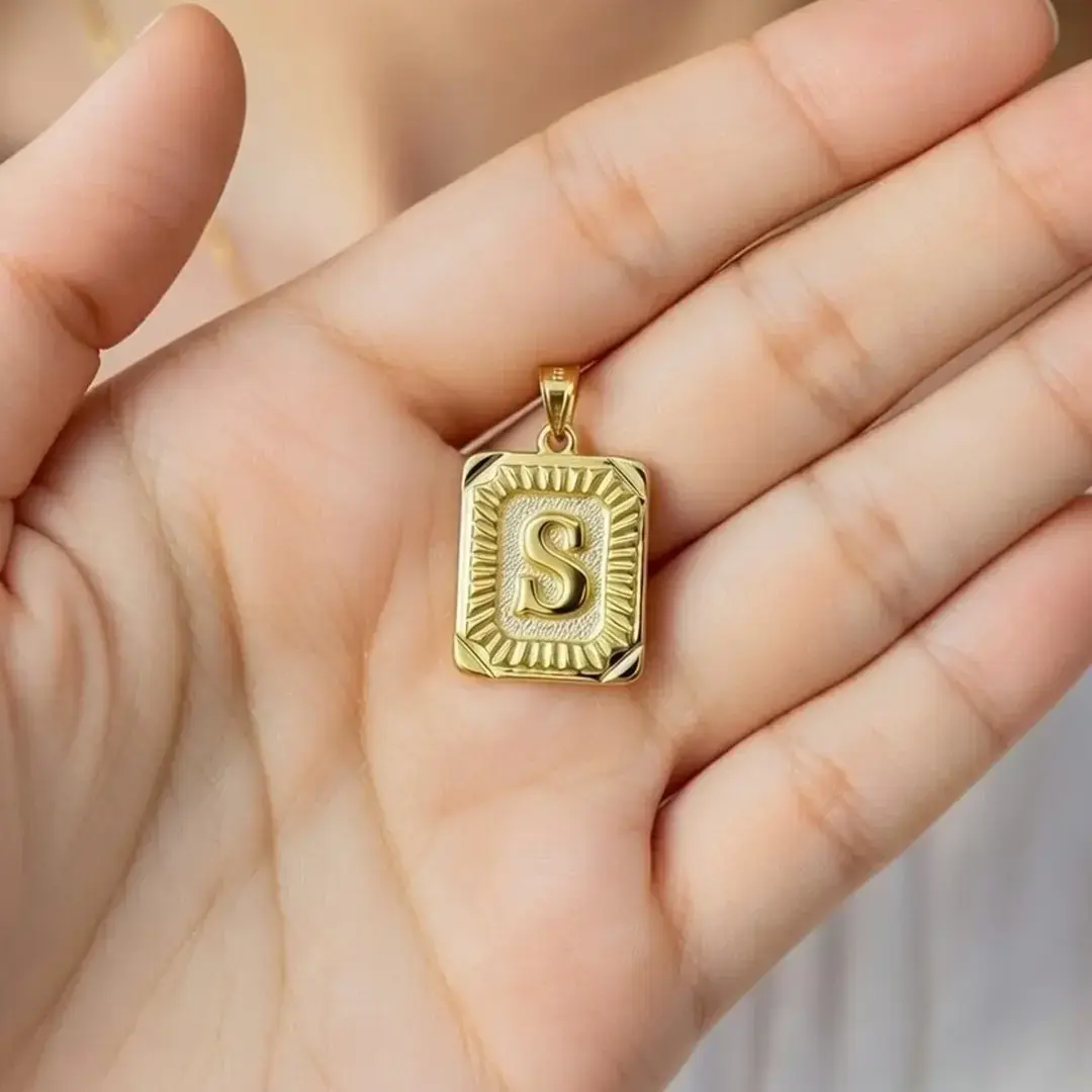 14 Ayar Altın Vintage Dikdötrgen Harf Kolye Ucu ( S Harfi )