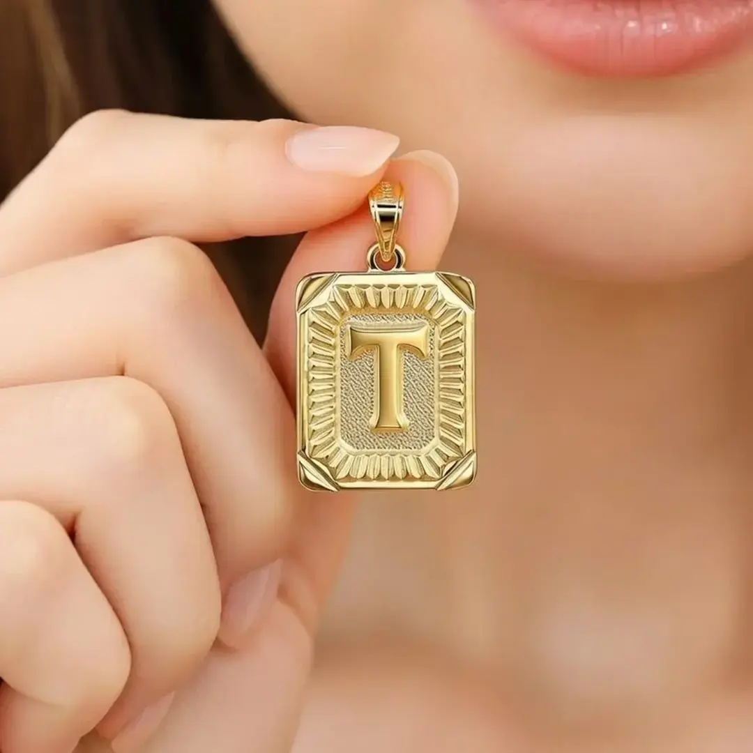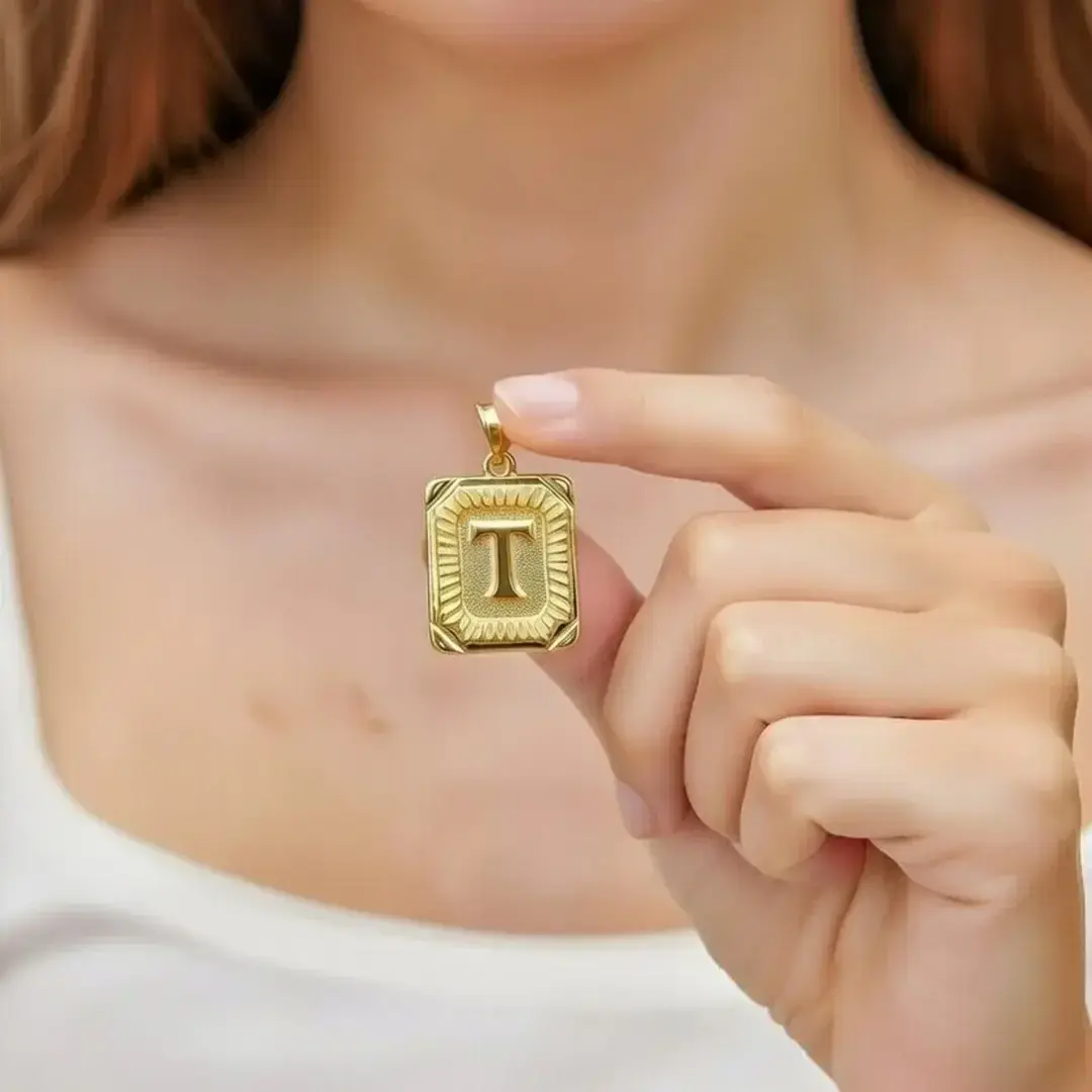 14 Ayar Altın Vintage Dikdörtgen Harf Kolye Ucu (T)