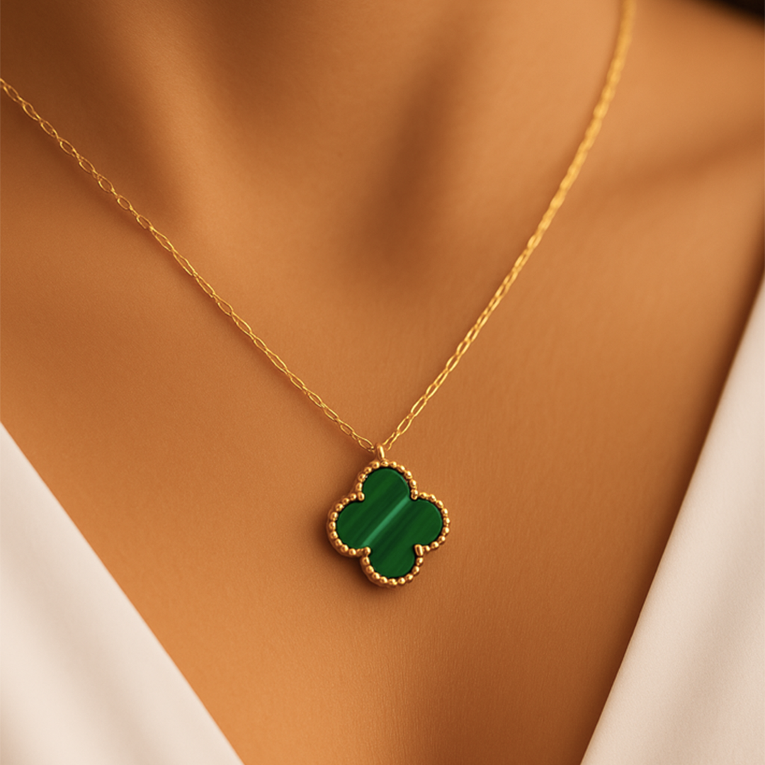 14 Ayar Altın Yeşil Yonca Kolye ( L )