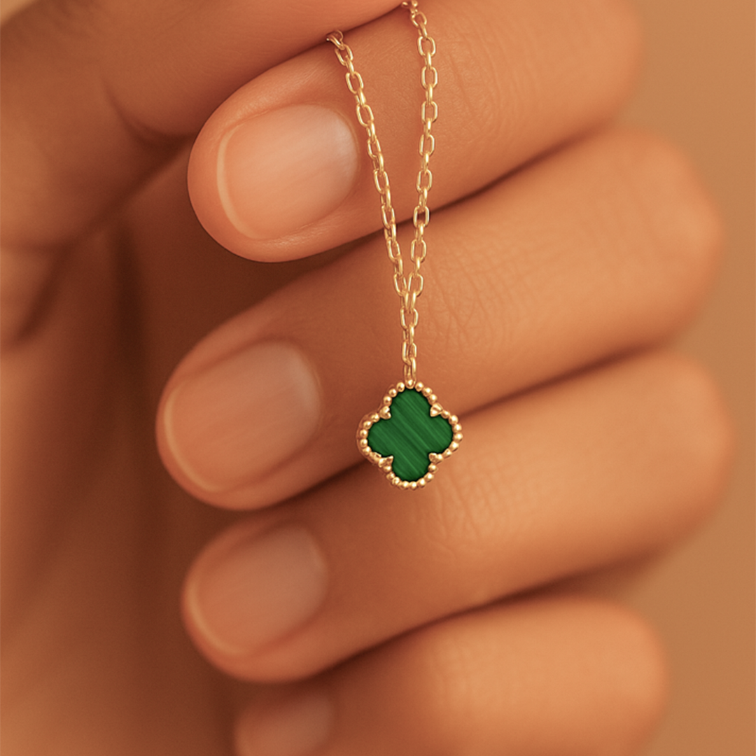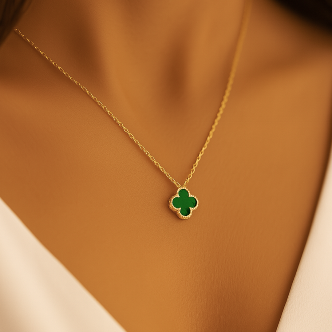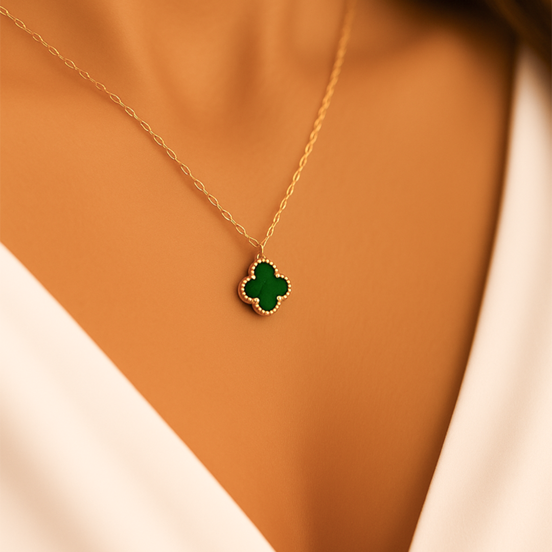 14 Ayar Altın Yeşil Yonca Kolye ( S )