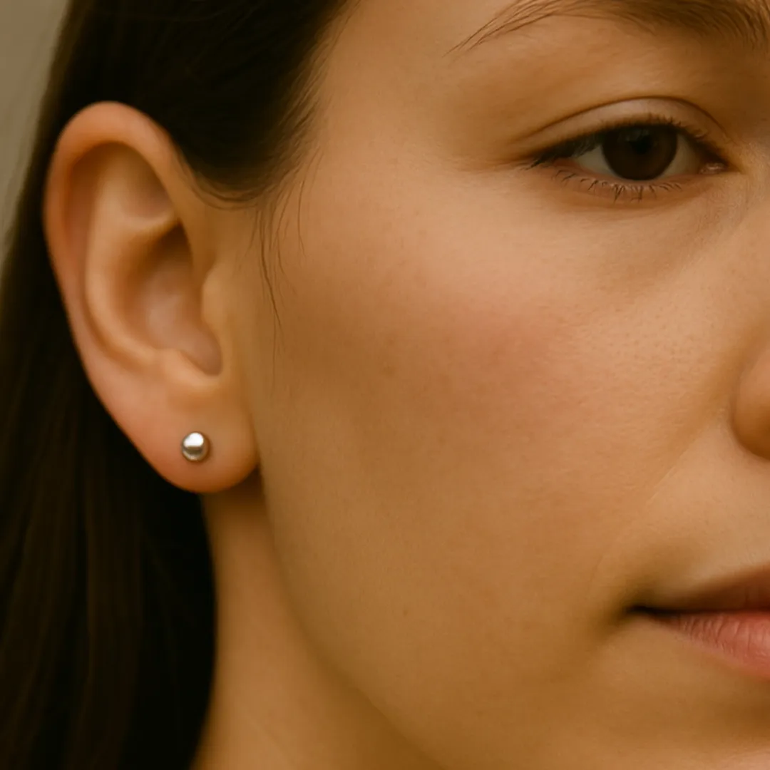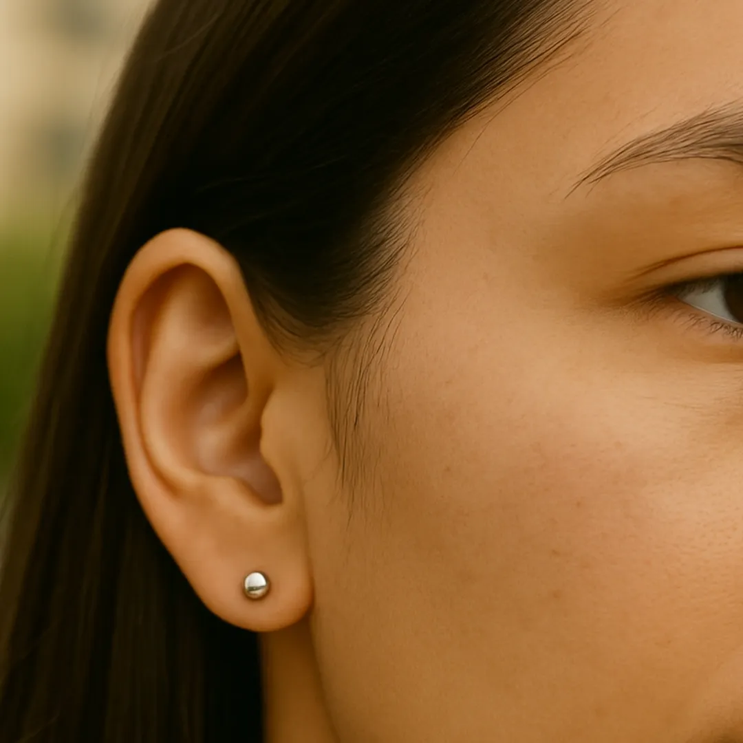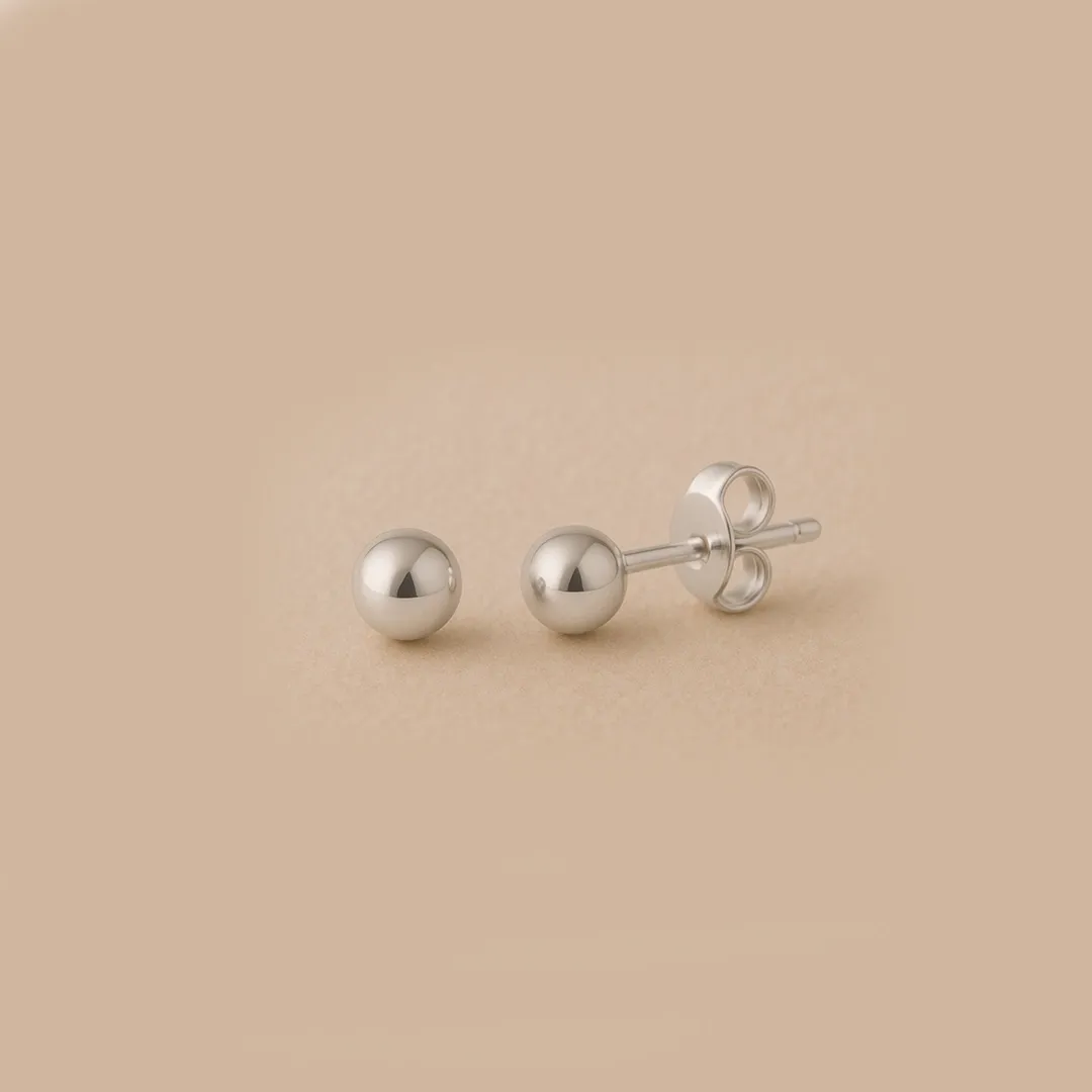 14 Ayar Beyaz Altın Parlak Top Küpe (4 mm)