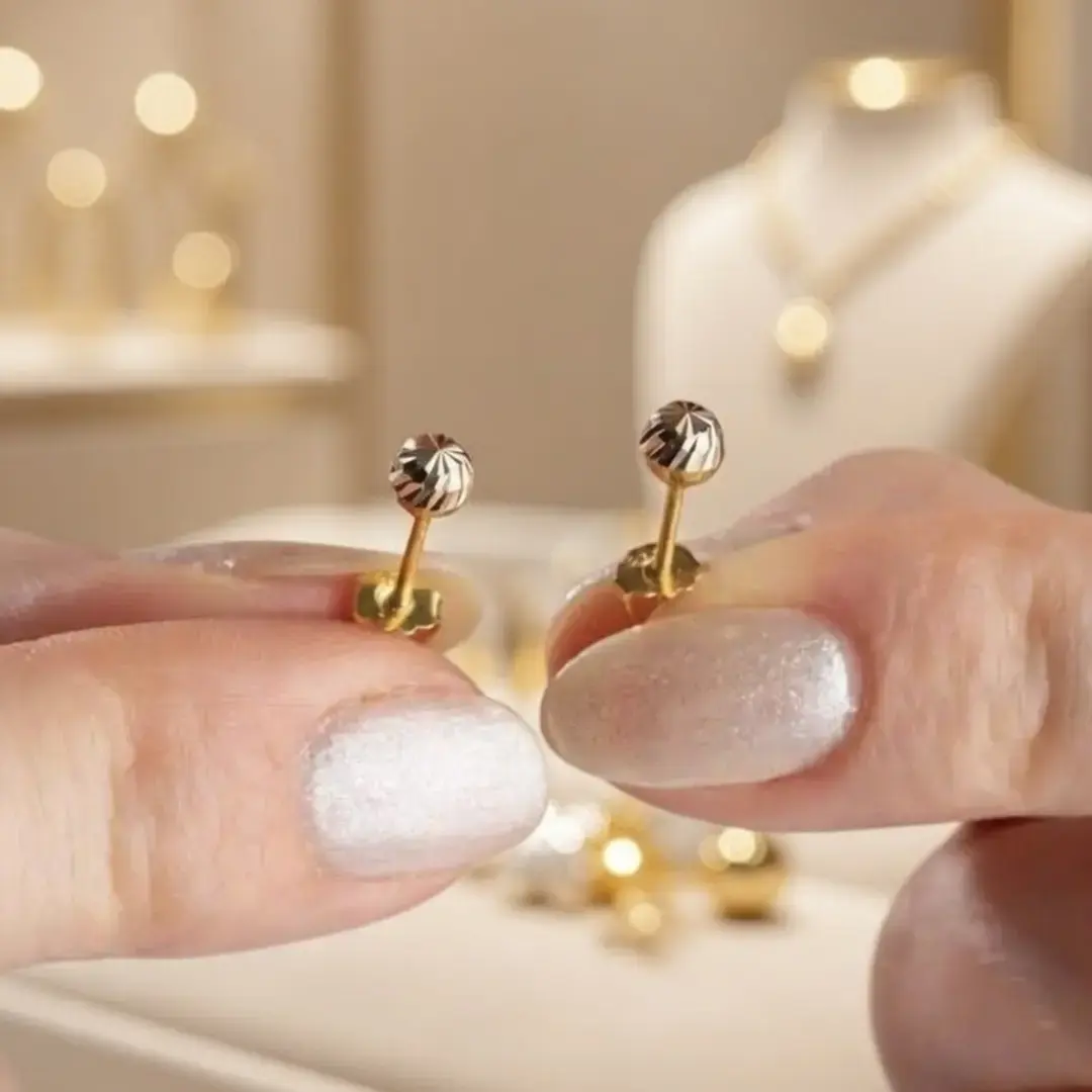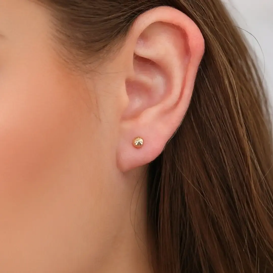 8 Ayar Altın Kalemli Top Küpe (4 mm)
