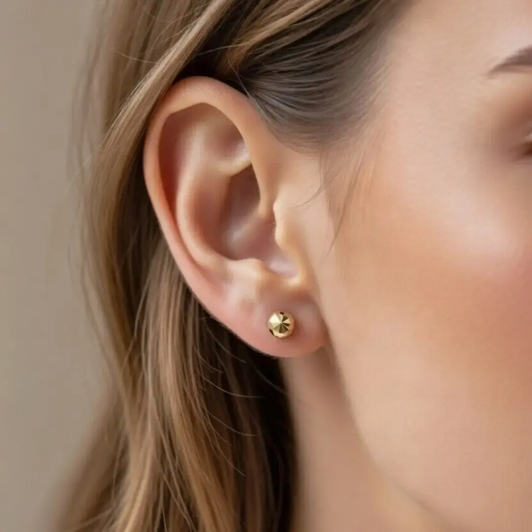 8 Ayar Altın Kalemli Top Küpe (6 mm)