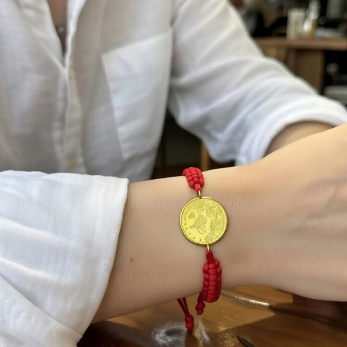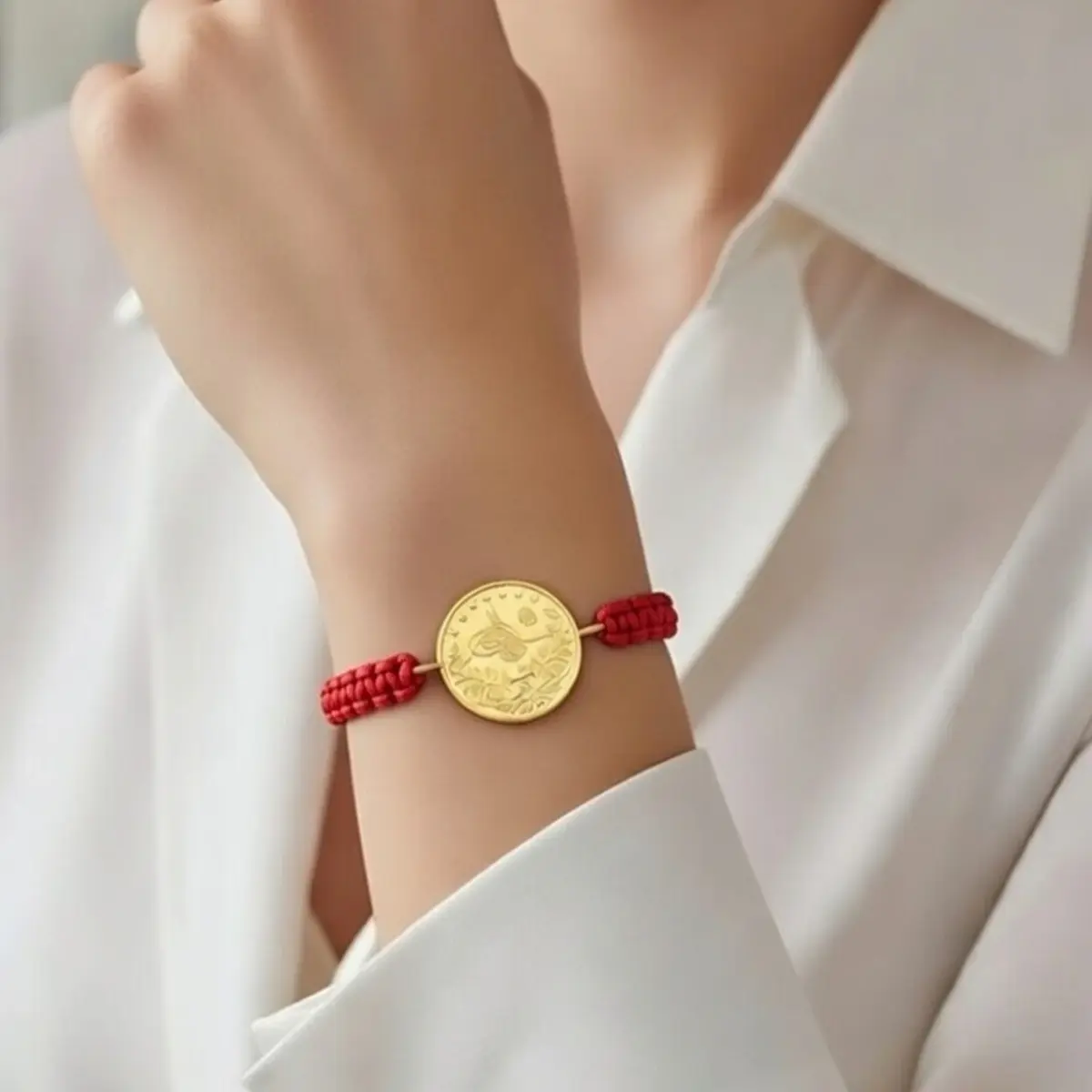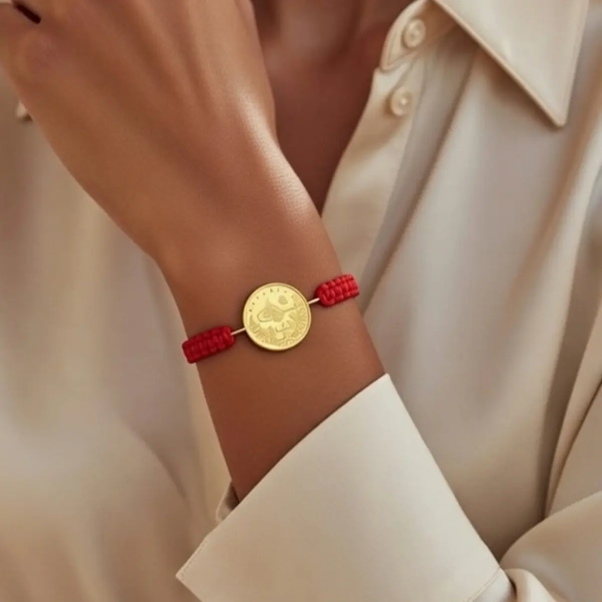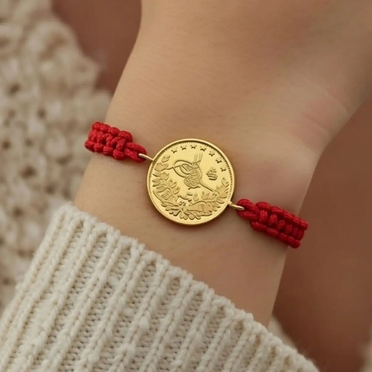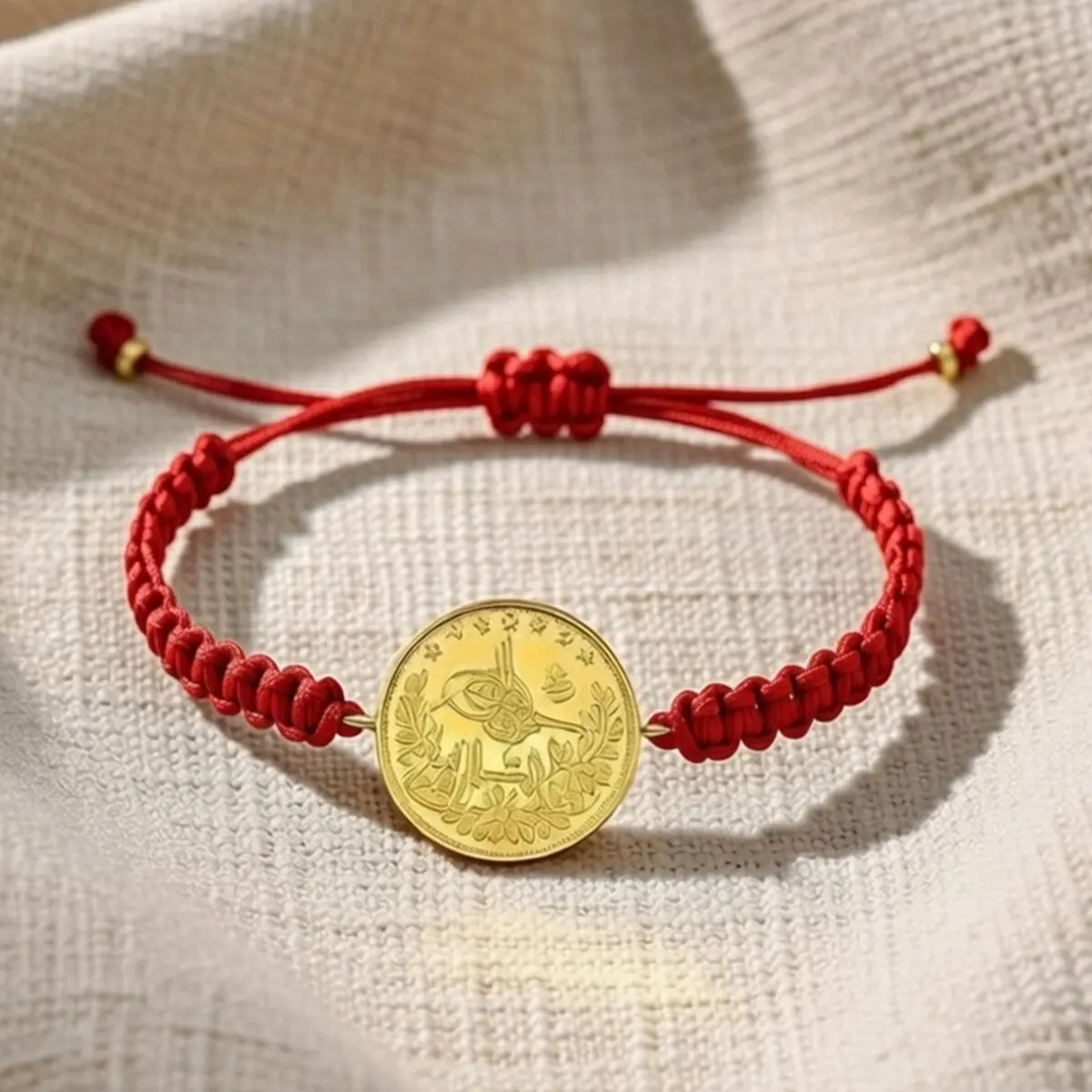 8 Ayar Altın Tuğralı İpli Bileklik (Kırmızı)