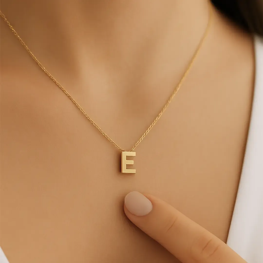 E Harfi Zincirli Küp Kolye