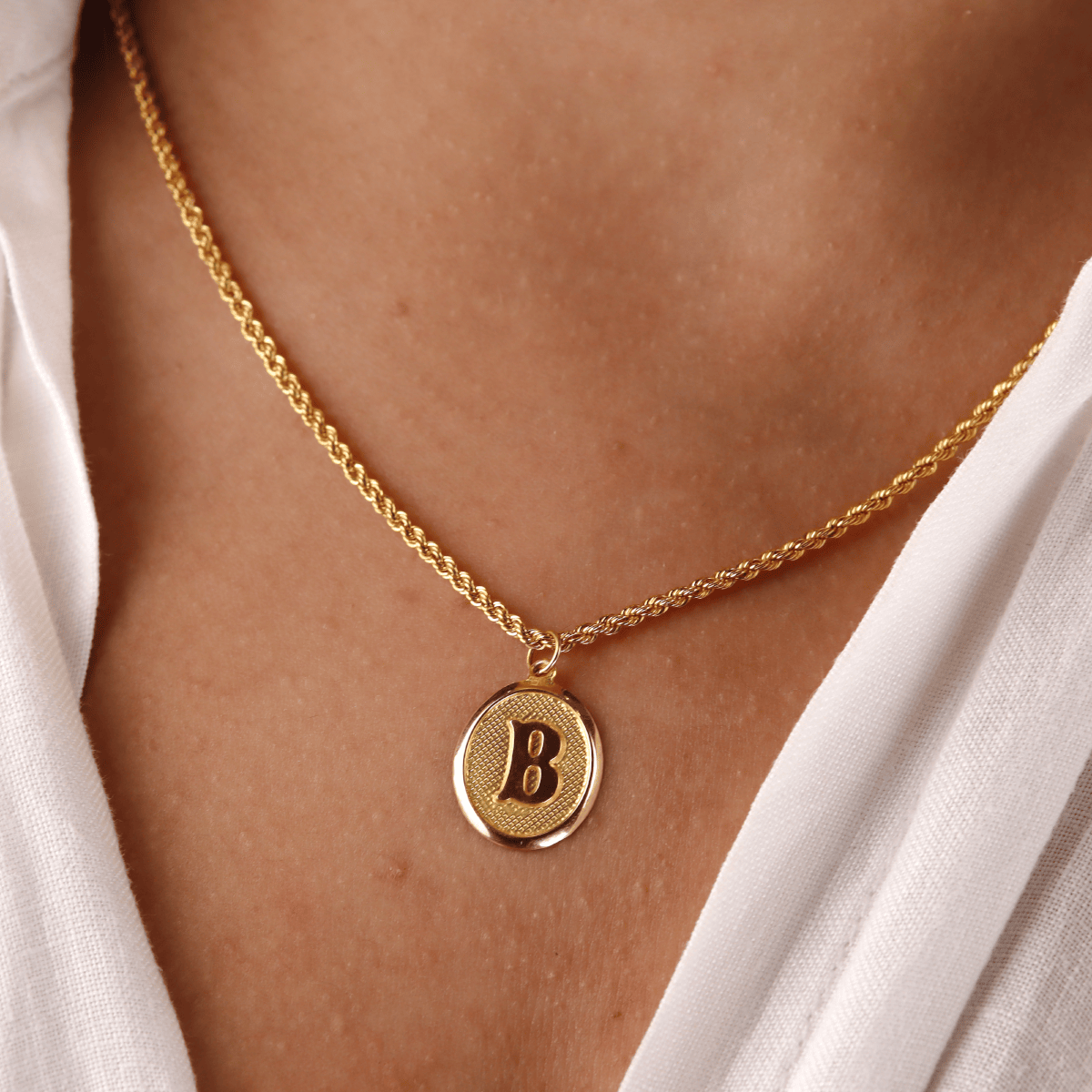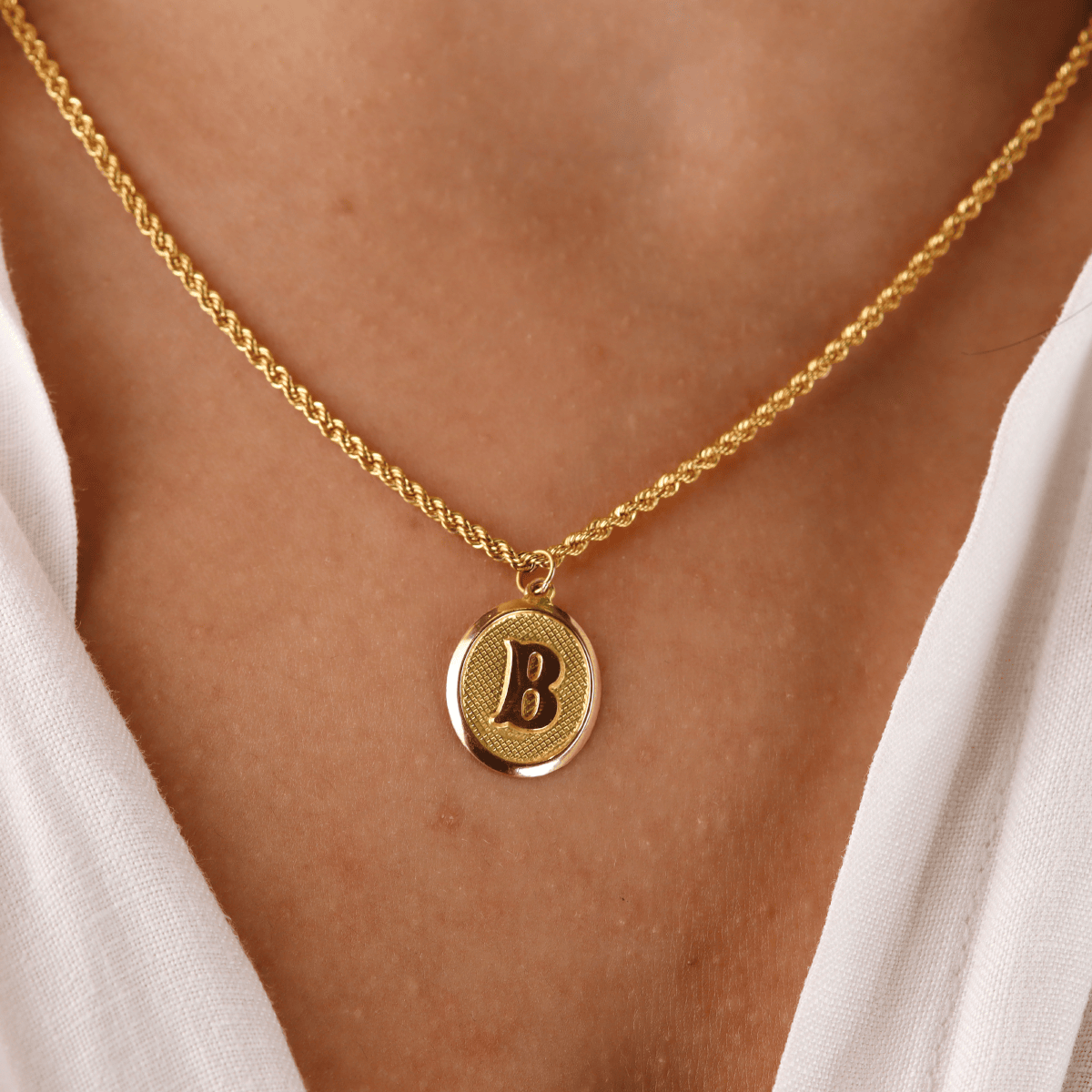 Halat Zincirli Vintage Oval B Harfi Kolye