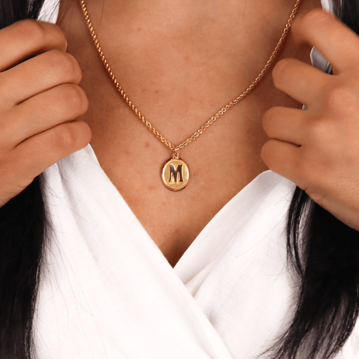 Halat Zincirli Vintage Oval M Harfi Kolye