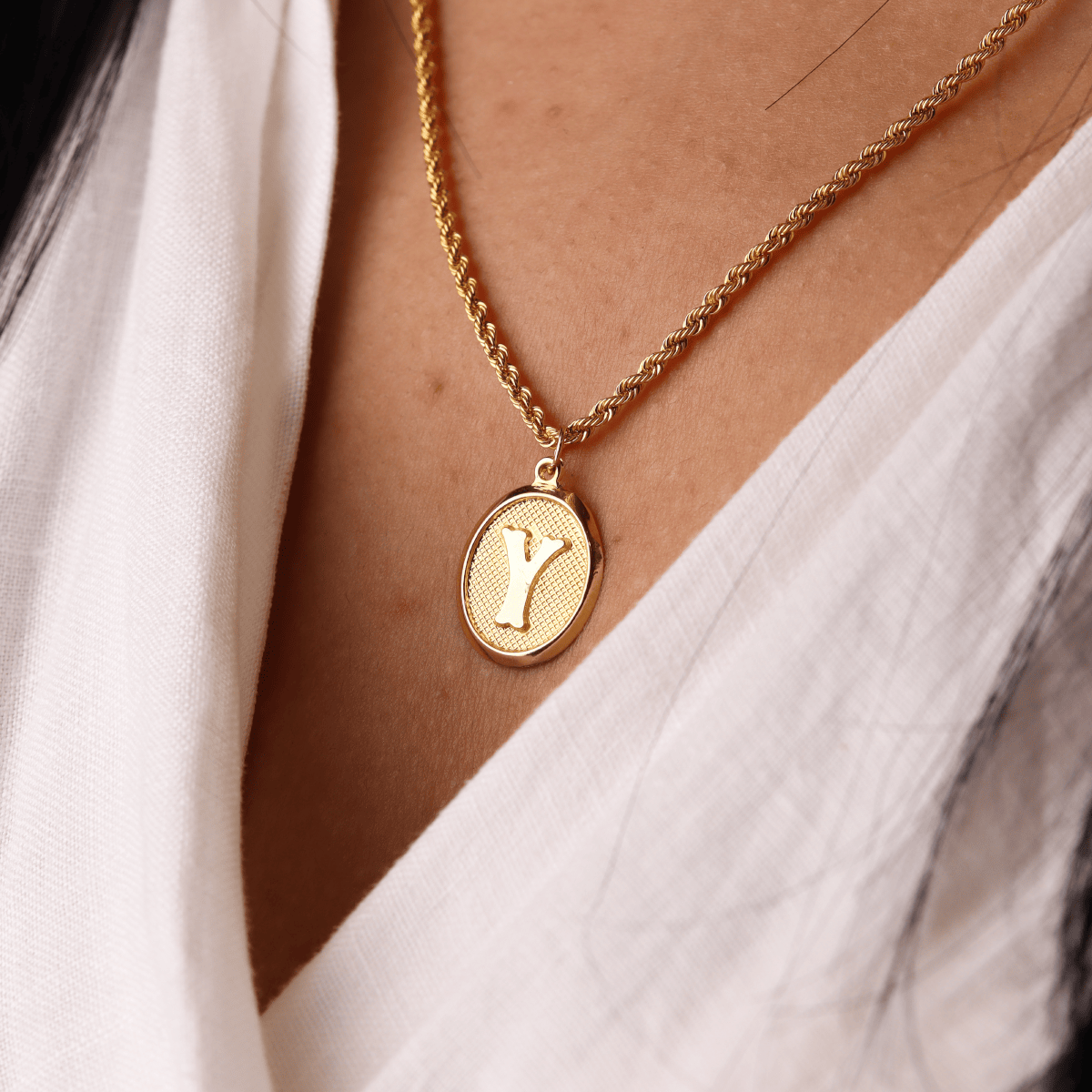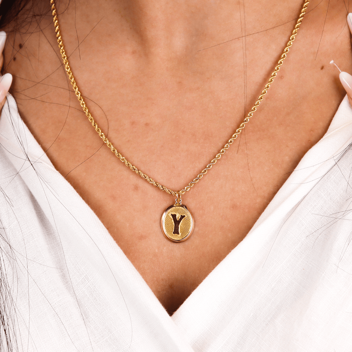 Halat Zincirli Vintage Oval Y Harfi Kolye