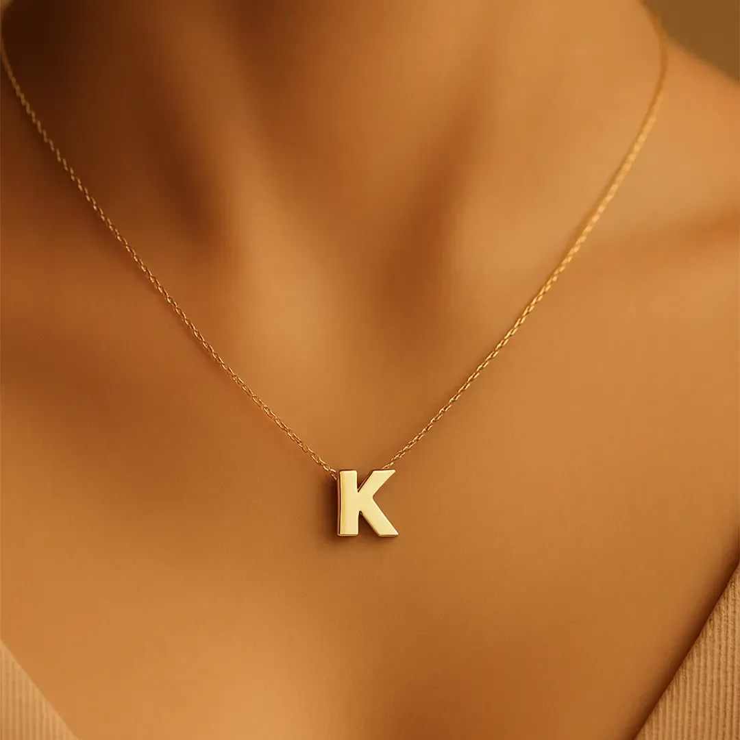 K Harfi Zincirli Küp Kolye