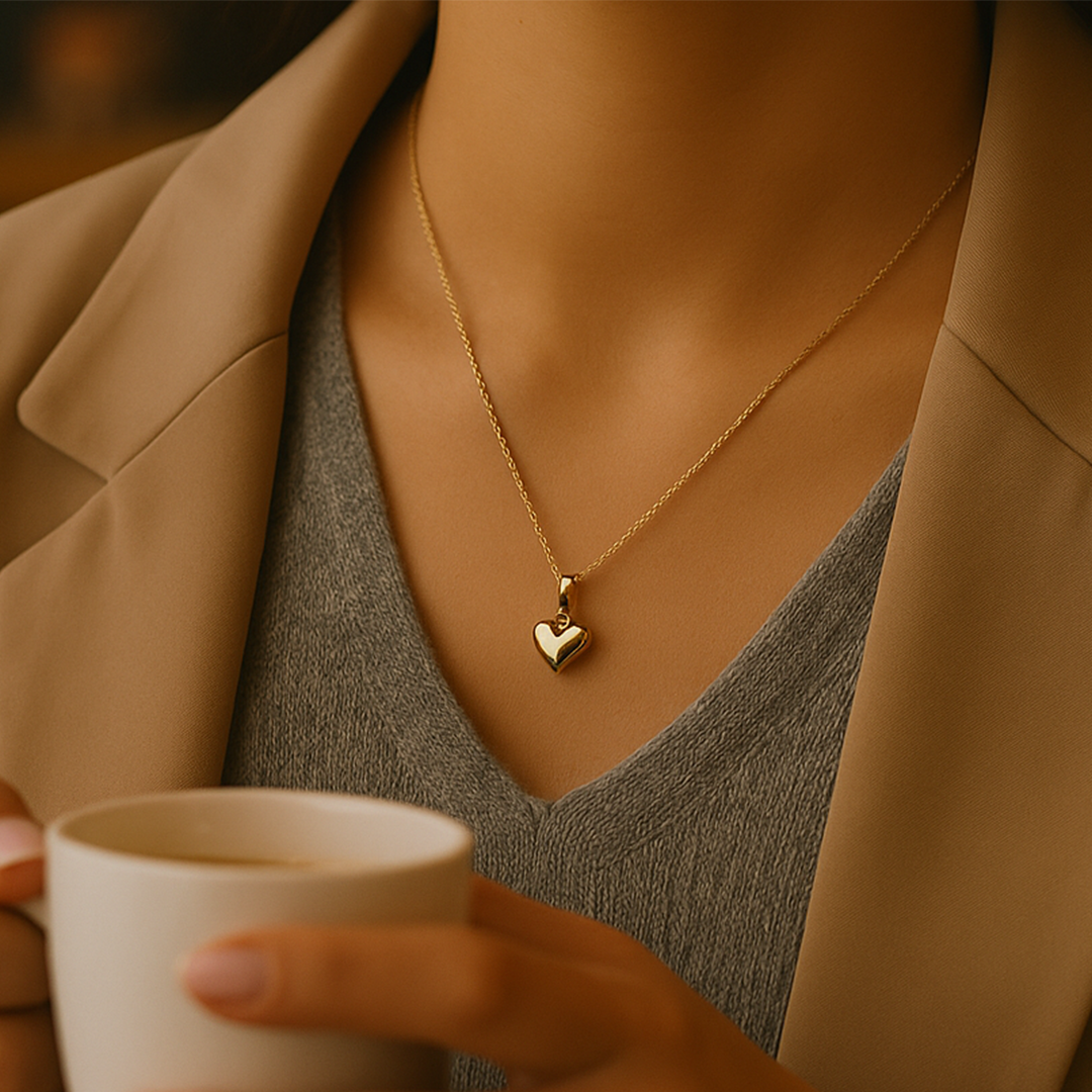 Singapur Zincirli Bombeli Kalp Kolye (S)